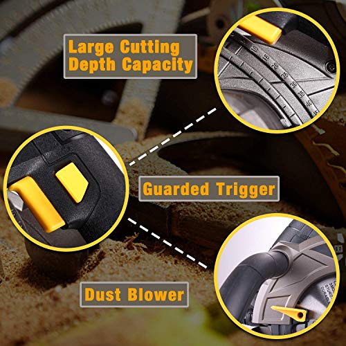 ▶【Más Fácil y Prefecional】Equipado con hojas de sierra de aleación 24 dientes y 40 dientes para un corte rápido de hojas de madera, aluminio y goma.