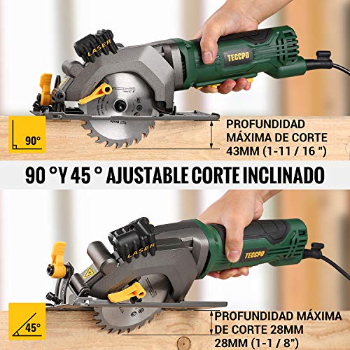 ────── TECCPO – Solid Booster in your Workshop ϟ ────── ¡TECCPO cree que afilar su herramienta antes de lograr su proyecto! Cualquier producto industrial básico es inseparable del soporte de herramientas. Como resultado, TECCPO se dedica a combinar tecnología y potencia en herramientas para mejorar la calidad de vida de los seres humanos. Para los usuarios que necesitan herramientas pequeñas portátiles con función profesional de corte de madera, la mini sierra circular eléctrica TECCPO-TAMS24P-115mm es la opción perfecta para el proceso. Características: Función de la manguera y operación específica Se necesita una manguera para conectar la aspiradora. El puerto delgado de la manguera se inserta en la salida de polvo de la máquina principal. El puerto grueso se utiliza para insertar la aspiradora. Puede recolectar mejor el aserrín innecesario y ponerlo a través de la manguera. Exportar. Resuelve los problemas de limpieza. Eficiencia y precisión Gran potencia a 3500 rpm y 90 °: 43MM (1-11 / 16 ”) 45 °: 28MM (1-1 / 8”) para una máxima profundidad de corte para superficies más suaves, diseño de luz láser para usted El trabajo es más preciso y conveniente.