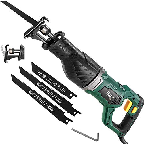 Sierra Sable, TECCPO 1050W Sierra Alternativa 240V con 2500SPM, Profundidad de Corte:150mm (Madera), 5mm (Metal), Carrera de Corte de 28 mm, Incluye 3 Hojas, Cambio de Hojas sin Herramienta -TARS24P