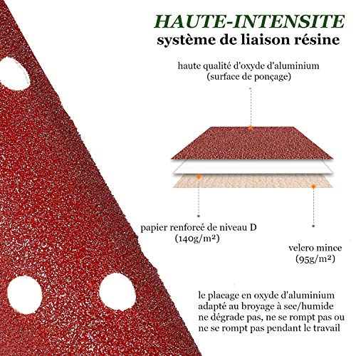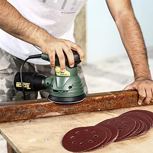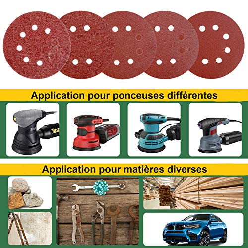 ▲ Tamaño universal: el tamaño del papel de lija es de 125 mm x 125 mm con 8 agujeros preperforados, adecuado para la lijadora orbital TECCPO TARS22P y TARS23P y cualquier otra lijadora orbital del mismo tamaño.