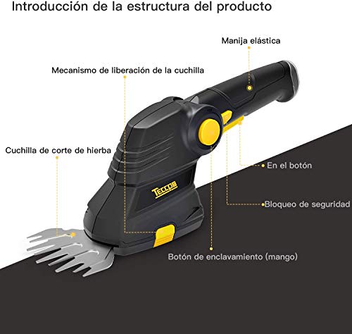 TECCPO Tijeras Cortacésped, 7.2V Tijeras Cortacésped a Batería de 1.5Ah, Cargar Rápidamente por 80min, Mango Giratorio, Ancho de Corte 90 mm – TDGS03G