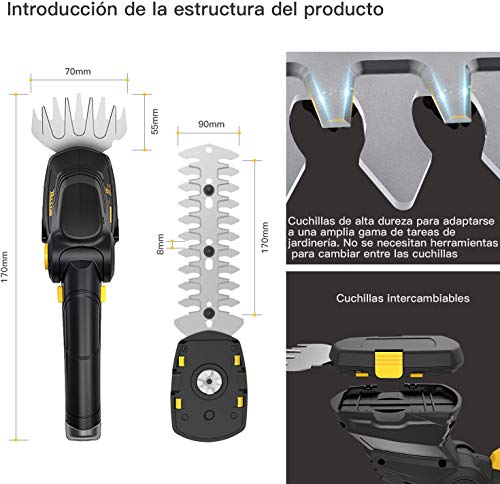☘ [ Promoción ] 7.2V 1500mAh Batería de litio incorporada, USB rapida carga de 80min, apoye 75 minutos del trabajo de corte de hierbs o 90 minutos del trabajo de podas. Darle una experiencia relajante de cortar.