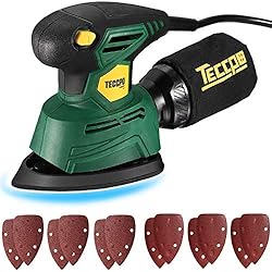 Lijadora vibrante, TECCPO, lijadora eléctrica, lijadora excéntrica, potencia de 350 W para pulir la madera también el metal, TARS22P
